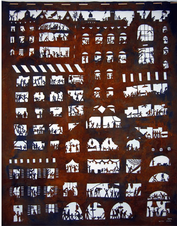 Beatrice was recently involved in an interesting project, to create a series of decorative arts in metal, rubber, acrylic, papercutting and paints commissioned by Blue Sea Development Company for “The Melody”, a cooperative development of apartments in the South Bronx. The works aim to celebrate the areas musical legacy.