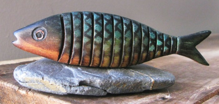 I couldn’t make it to see wood sculptor Jeff Soan’s latest exhibitions, and so he very kindly sent me this little fish, to give me more of an idea of how his work moves in the flesh. As he said, it is “part of the pleasure”.